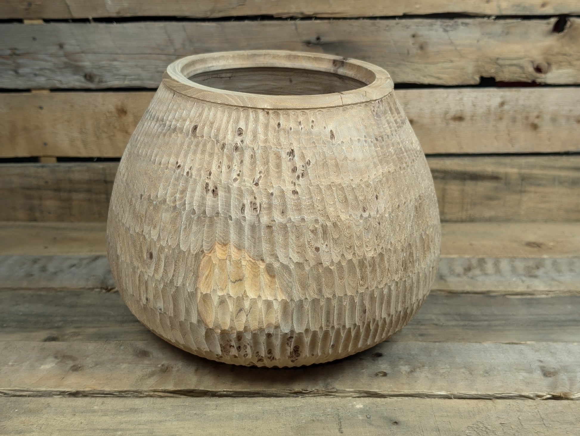 A truly one of a kind hand carved burr elm hollow form, turned green with a hand cut finish. No finish applied. Made from locally salved wood this unique beauty is sure to catch the eye.