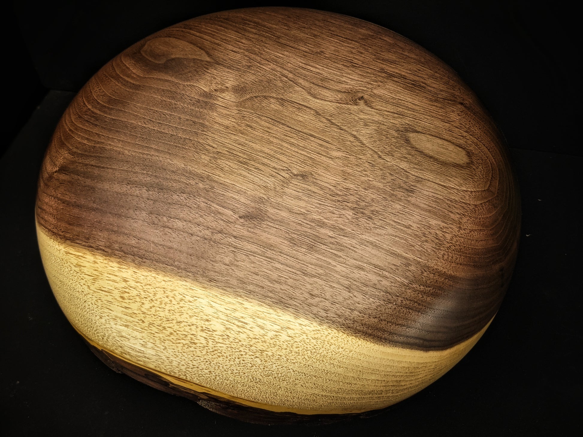 Beautiful live edge bowl turned from some gorgeous black walnut. The stark contrast between the heart and sapwood really gives it a bold look! Finished with food safe walnut oil and wax.