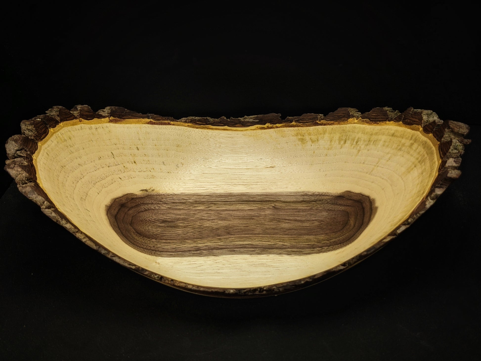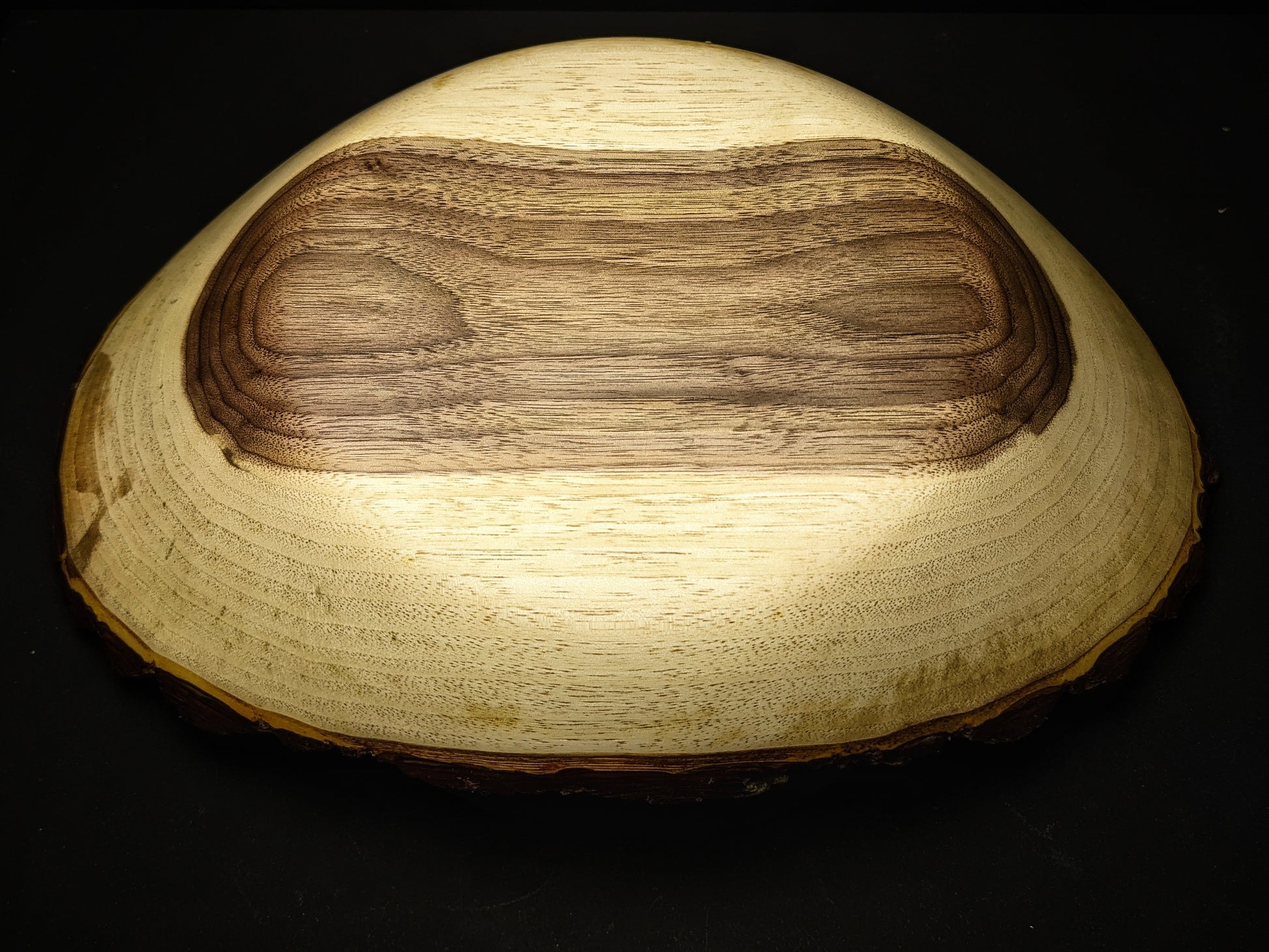 This beautiful live edge young black walnut catch all was green turned from a local salvage.