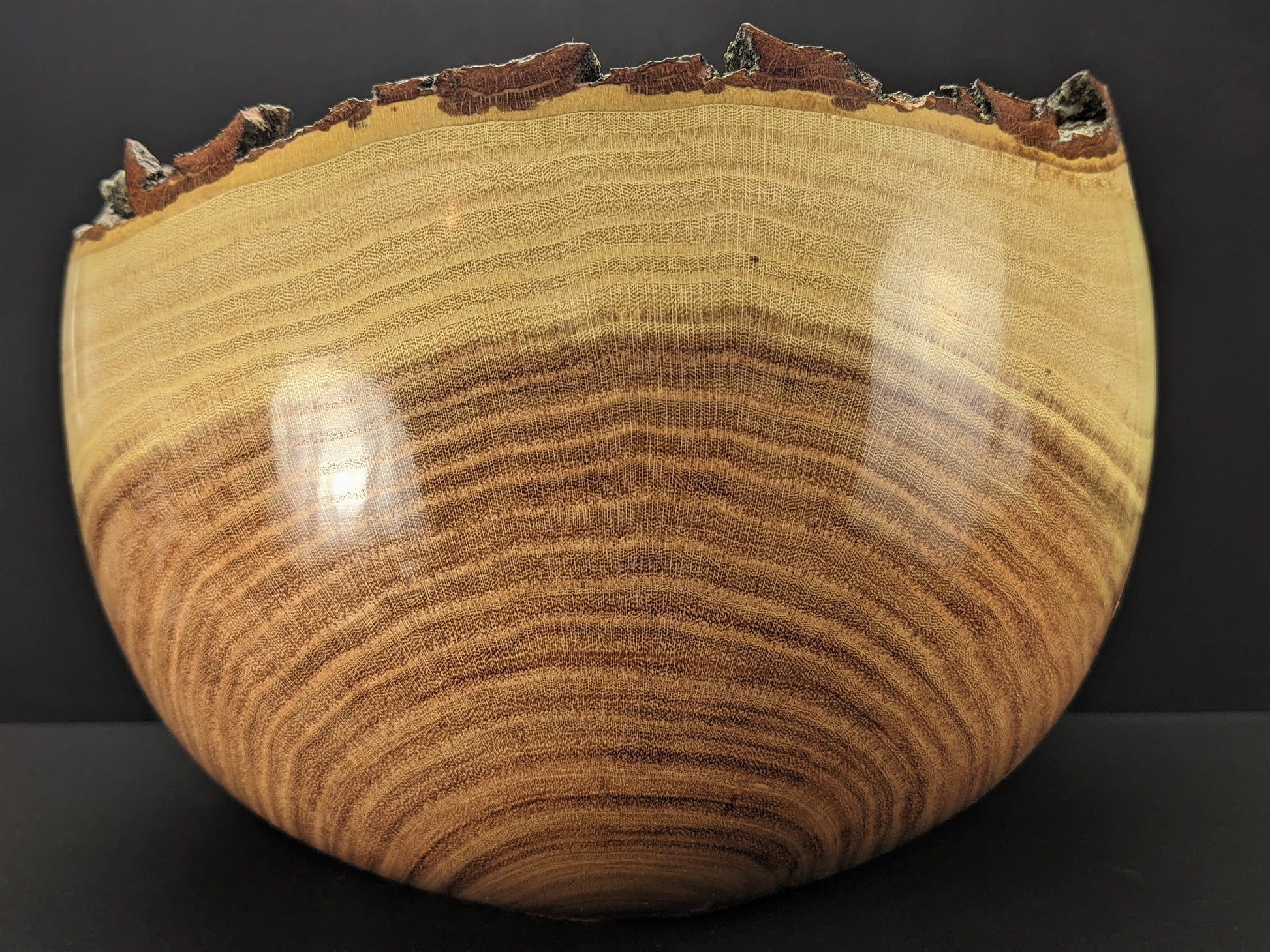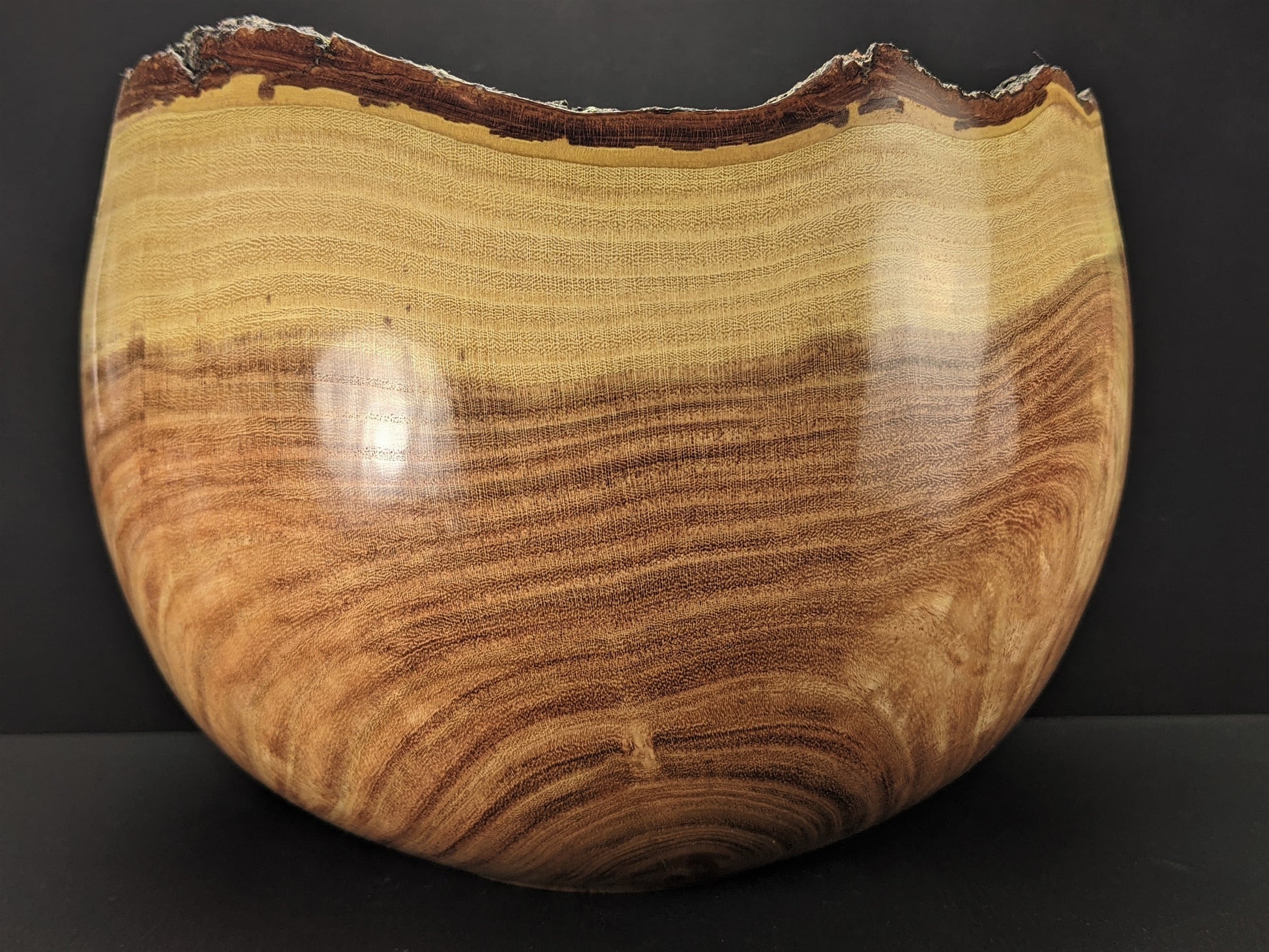 Fish bowl style live edge Honey Locust bowl green turned and finished with shellac.