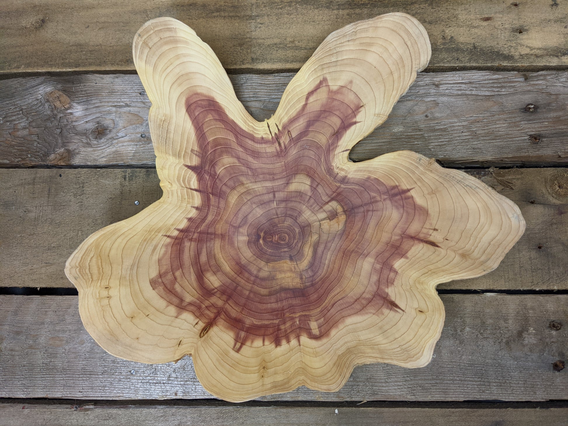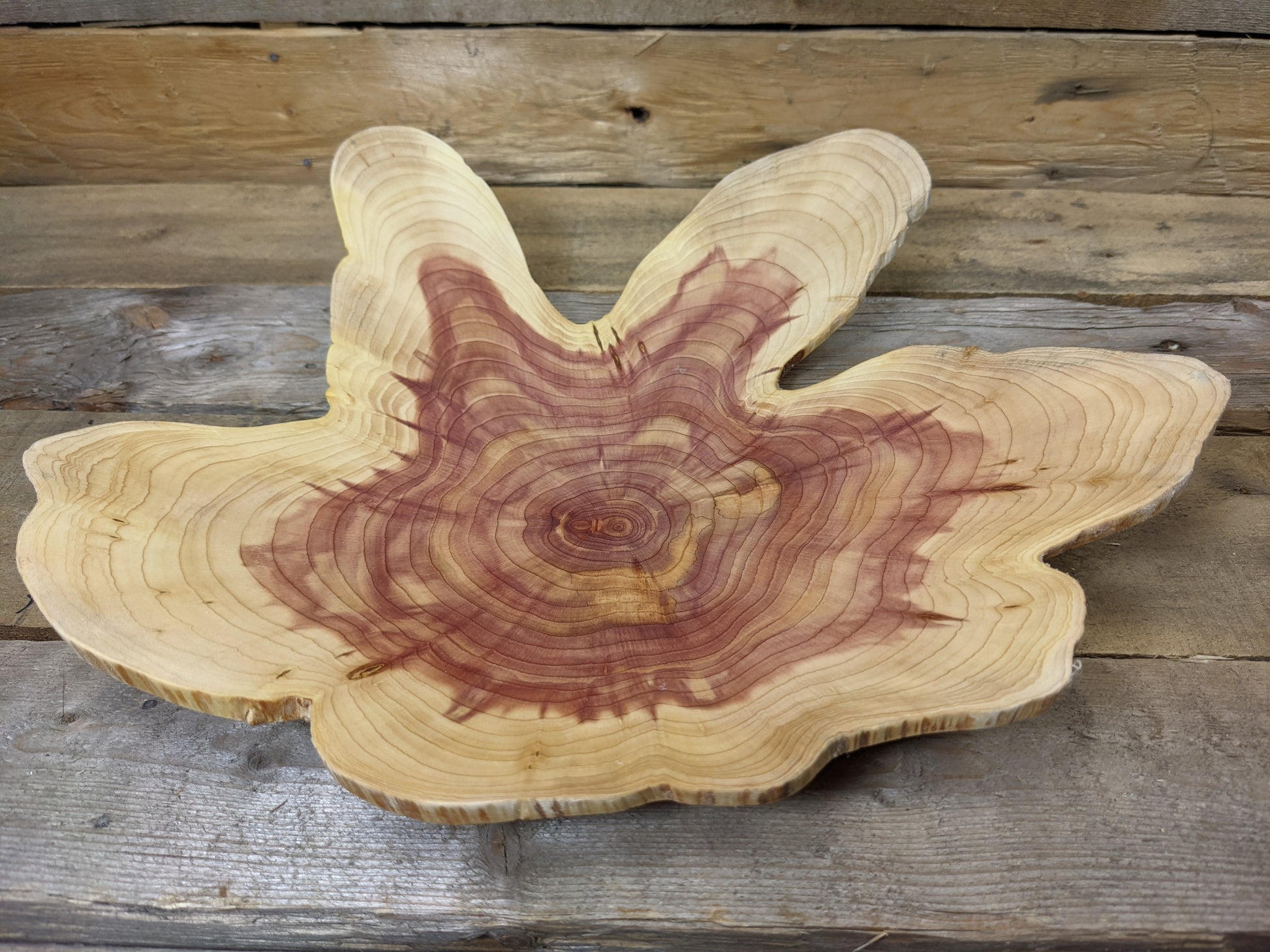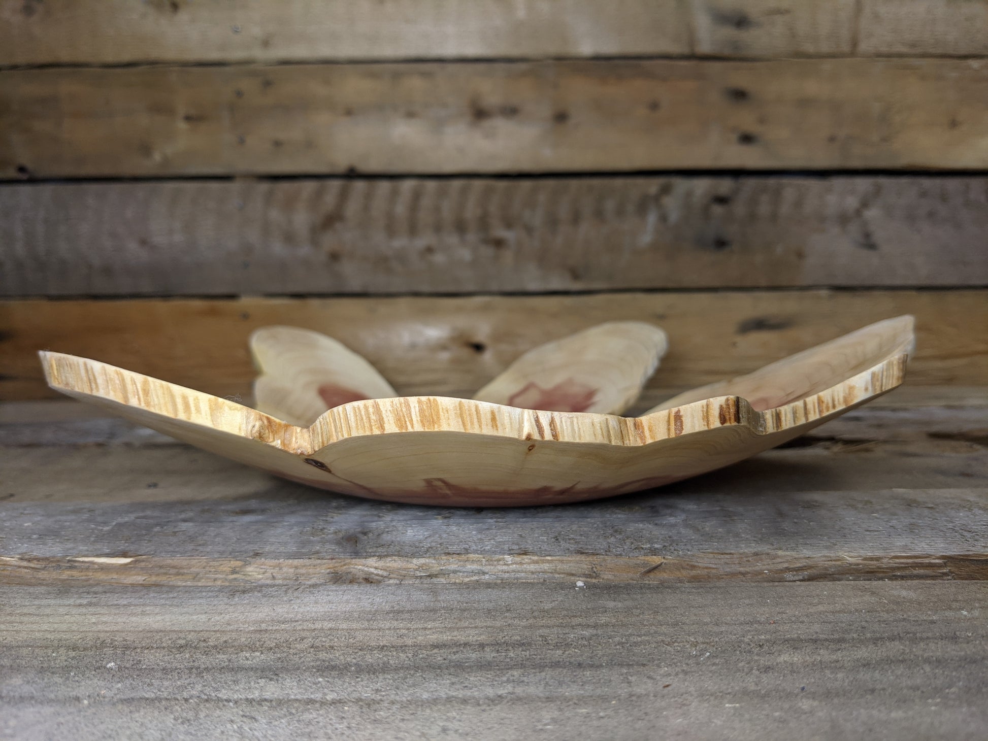 This super delicate natural edge dish was made from colourful and fragrant juniper wood. Light as a feather and finished with food safe oil and wax, ths pieyis probably more decorative than useful.